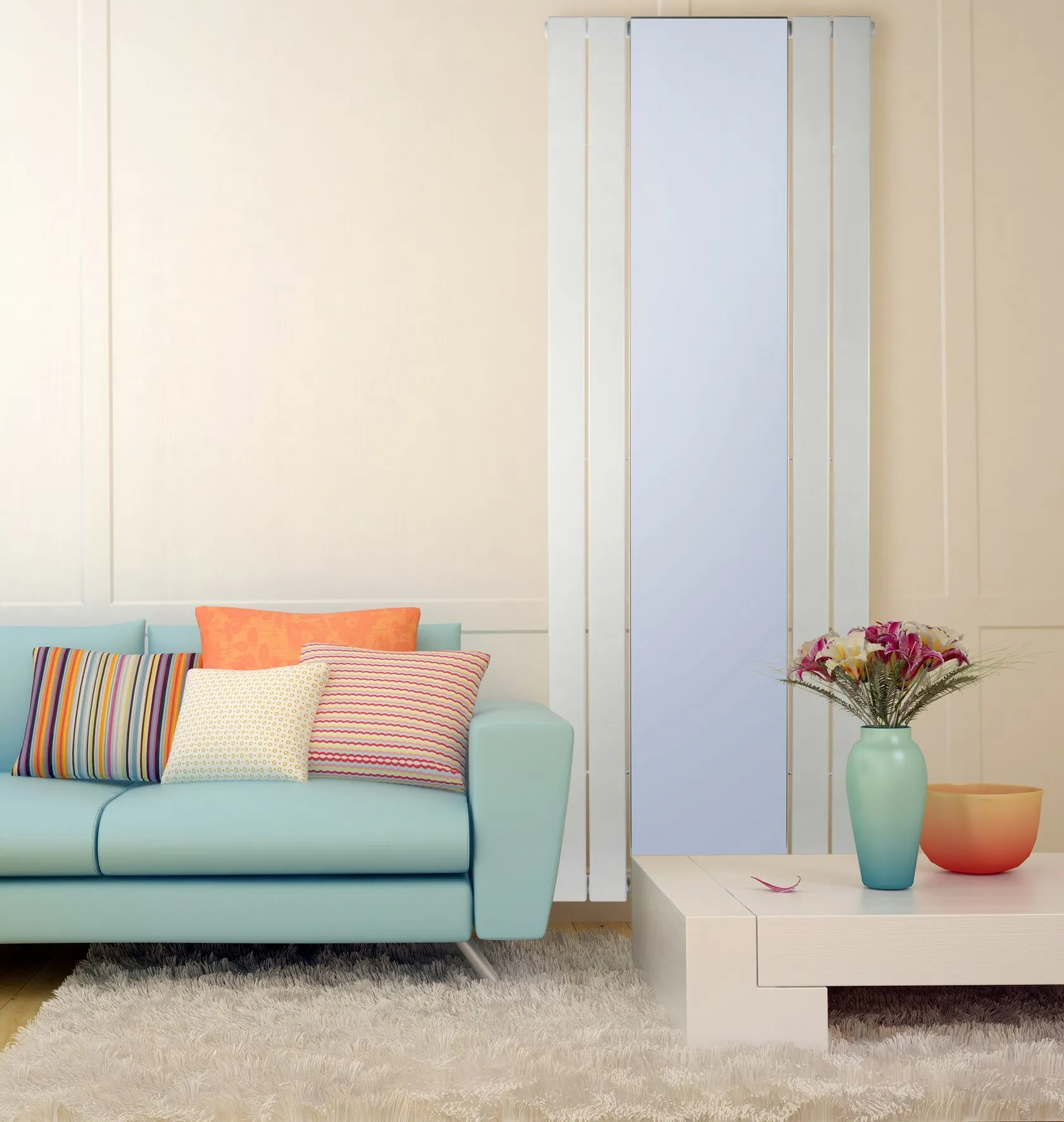 Order the Vertical Designer Radiator with Mirror 1800×609 mm from WarmCastel. Our consultants can help you choose the right connection setup and confirm compatibility with your heating system.